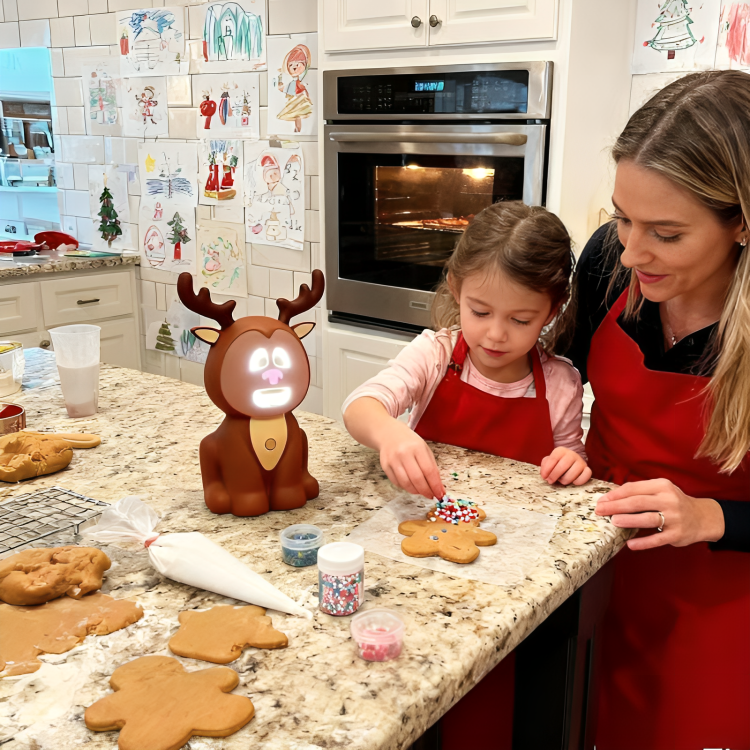 Speak a word and his lips move in sync with your voice. He blinks, reacts, and responds like a tiny festive companion. It’s the kind of interactive magic that makes people pull out their phones to record.