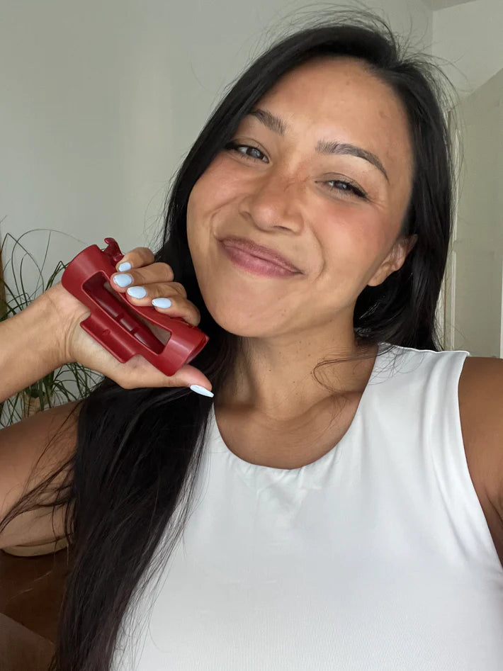 Designed to adapt to you, its ergonomic body gently compresses against your head, eliminating pressure points and discomfort . Whether you're in the car , at work , or lying on the sofa , it stays put without pulling or leaving marks . Flexible , lightweight , almost imperceptible : a clip that follows your rhythm. Because beauty and well-being start at the root .