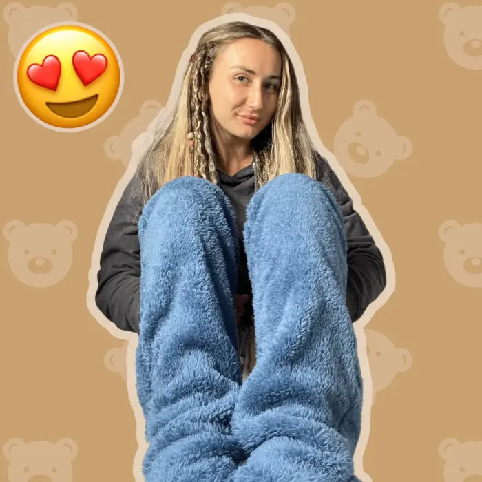 Cold floors and drafty mornings? Teddy Socks wrap your feet and legs in plush teddy fleece that keeps you warm without overheating. Like your favorite blanket—only wearable.